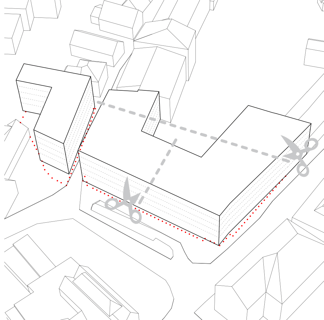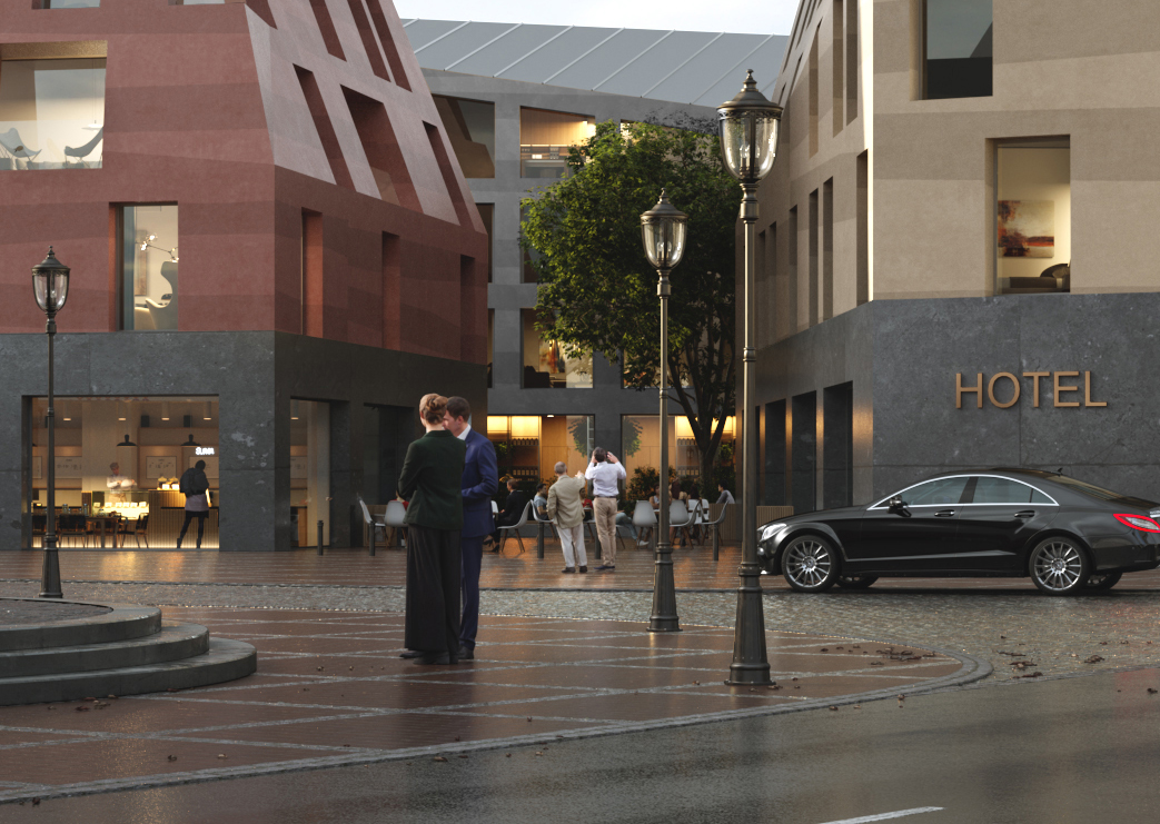 El proyecto plantea un conjunto de piezas arquitectónicas con un uso híbrido que combina espacios comerciales en planta baja, un hotel, residencias y oficinas. El diseño busca consolidar una manzana urbana activa y permeable, en diálogo con el tejido existente y con la escala de la ciudad. La volumetría se fragmenta en varios edificios con identidad propia, pero conectados entre sí, lo que permite una transición fluida entre las diferentes funciones y favorece la integración del proyecto en su contexto inmediato.