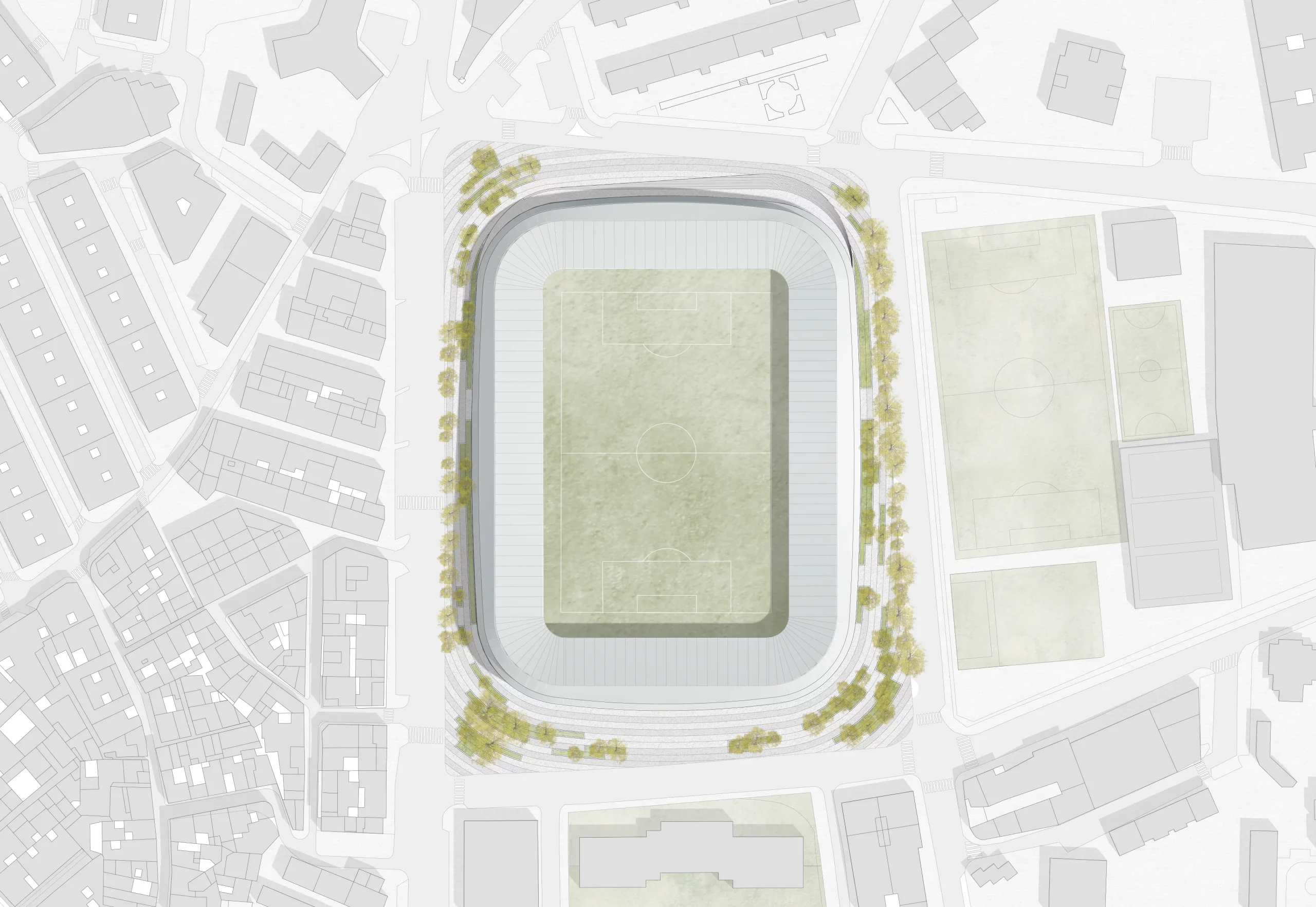 Más allá de su carácter deportivo, el estadio se proyecta como una pieza urbana integrada, con plazas, miradores y espacios libres que conectan con la ciudad y fomentan la vida pública. El objetivo es que no sea únicamente un lugar para el fútbol o el atletismo, sino un polo de actividad cultural y social, abierto y accesible para los ciudadanos.