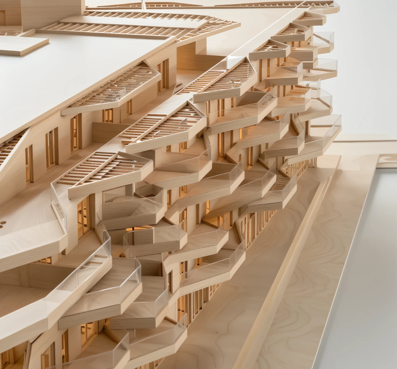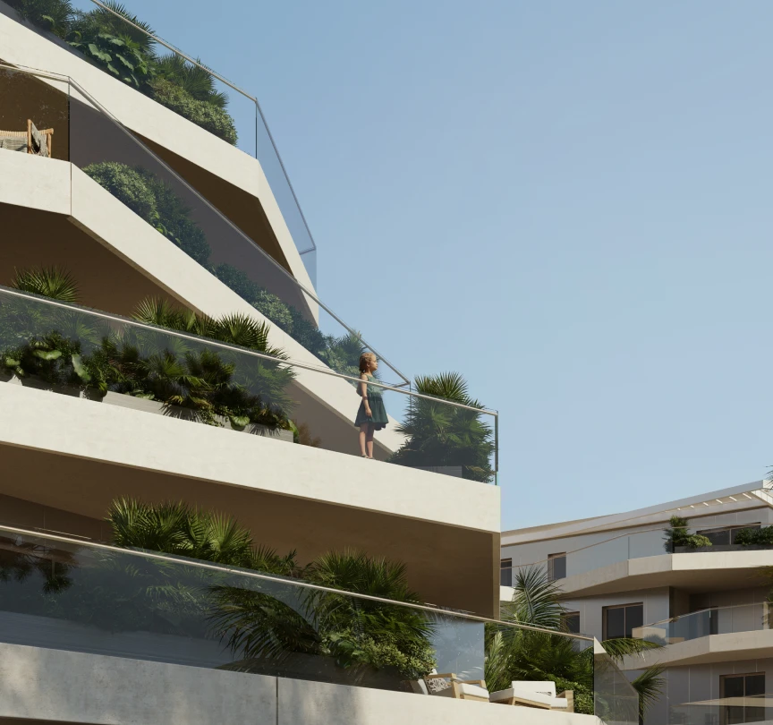 Es en los testeros donde la arquitectura se vuelve más precisa, más afinada. Lejos de cerrar los extremos con muros ciegos, el edificio se deja tallar en sección, en una operación sutil de sustracción. Planta a planta, el volumen se vacía, liberando terrazas profundas que construyen una fachada escalonada, viva, luminosa. Es una arquitectura que se trabaja desde el borde, que transforma la masa edificada en una secuencia de espacios habitables al aire libre.