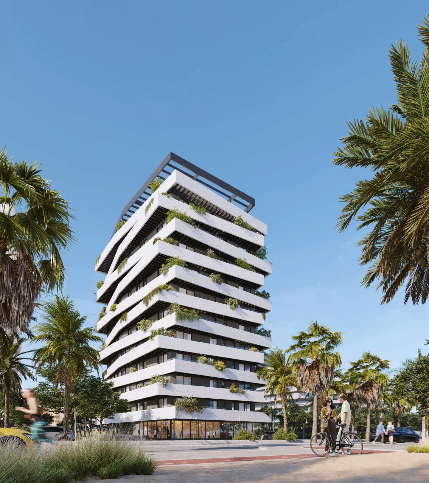 Octavia es una pieza urbana sensible que transforma la relación cotidiana entre la ciudad y el mar en Málaga. Frente a una costa en constante desarrollo, este edificio apuesta por democratizar vistas y calidad espacial a través de una volumetría que se torsiona permitiendo que todas las viviendas tengan vistas al mar.