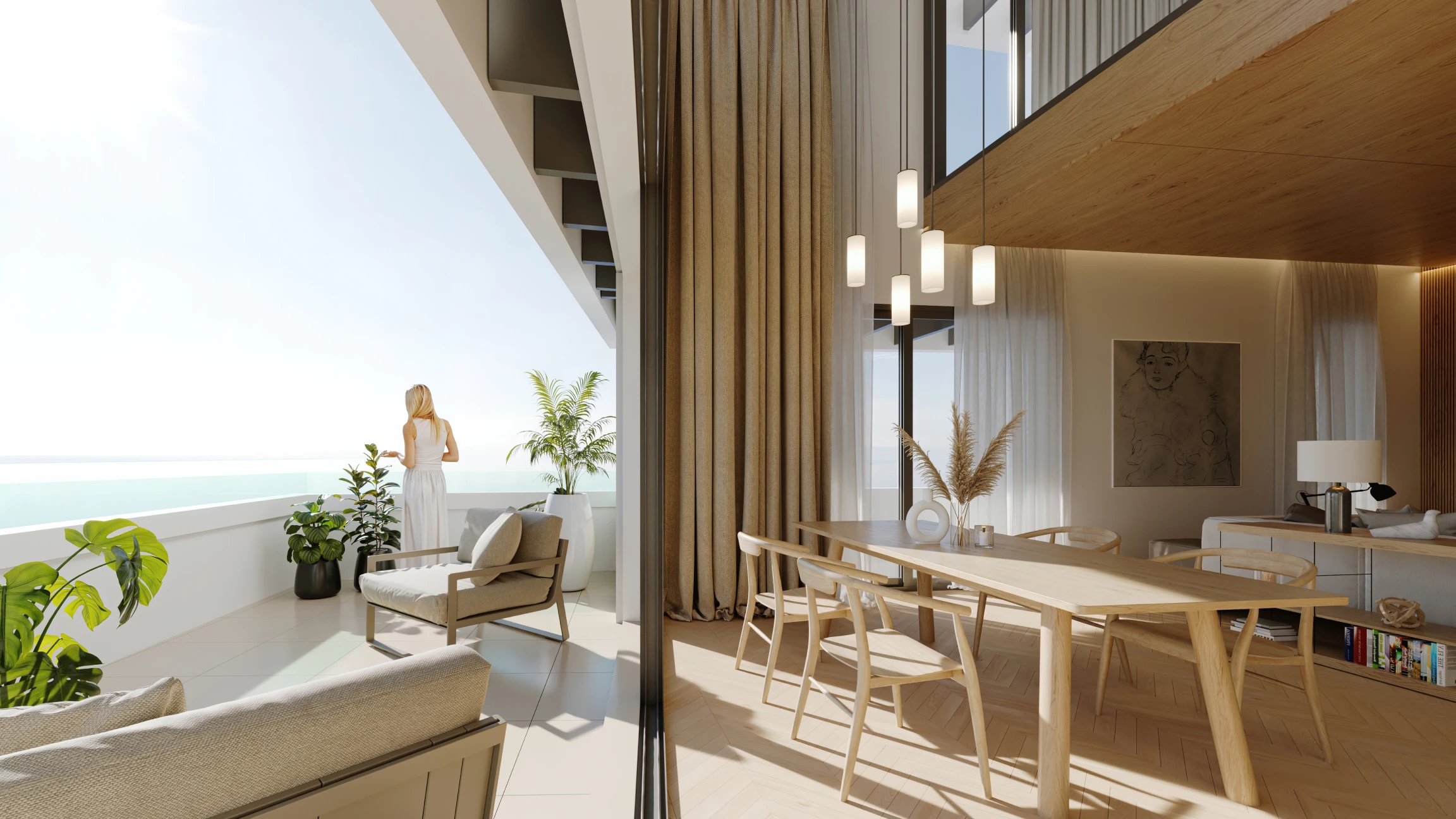 El interiorismo de las viviendas de Octavia se inspira en la esencia misma del paisaje malagueño, trasladando la calma y la calidez de lo natural al espacio doméstico. La madera en estado puro, los textiles orgánicos y la presencia sutil de cerámica y vidrio componen un ambiente que invita a la serenidad. Esta atmósfera, basada en tonos neutros y texturas sinceras, genera espacios donde la arquitectura no solo se vive, sino que se respira.