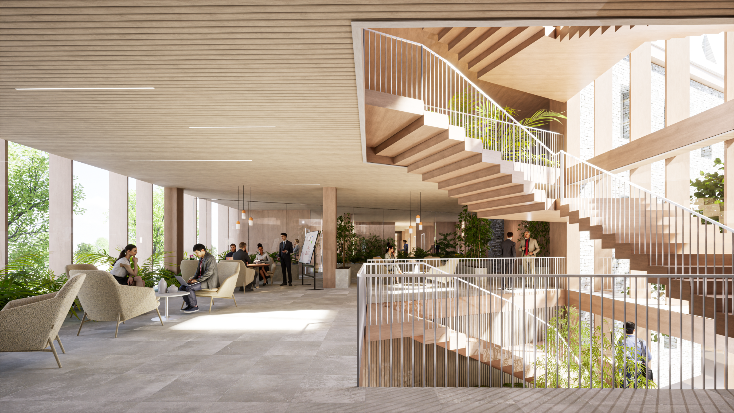 En términos constructivos, el conjunto combina soluciones contemporáneas y sostenibles: estructuras en madera laminada y CLT, apoyadas con acero y hormigón cuando es necesario, envolventes de alto rendimiento y cubiertas con paneles fotovoltaicos integrados. Todo ello para alcanzar el estándar de edificio de consumo casi nulo, optimizando la energía, el confort y la calidad ambiental interior.