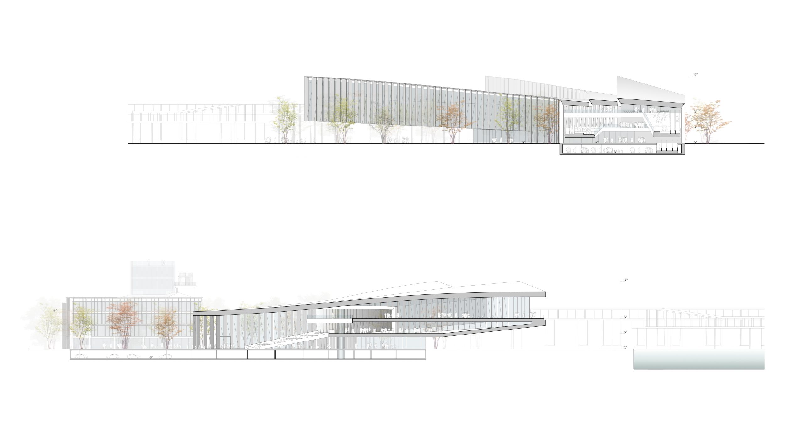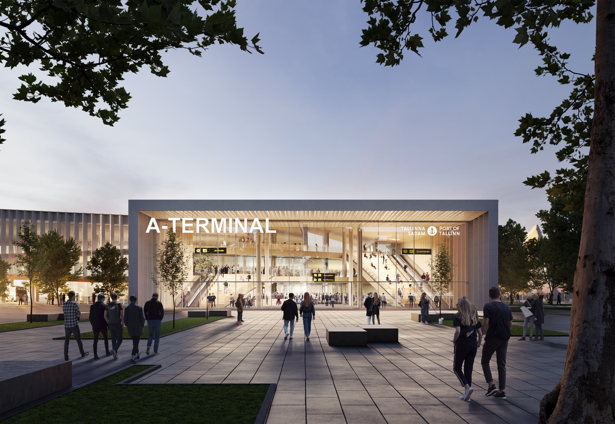 El nuevo complejo no se limita al edificio de la terminal. Se proyecta como un fragmento de ciudad contemporánea, donde conviven la terminal, un edificio de oficinas, un aparcamiento y un paisaje urbano abierto al público. El espacio exterior se articula en plazas, áreas verdes y zonas activas que buscan convertir este enclave en una de las áreas más atractivas del centro de Tallin. Un paseo lineal conecta la terminal con el resto del puerto, extendiendo la experiencia urbana hacia el mar y hacia la propia ciudad histórica.